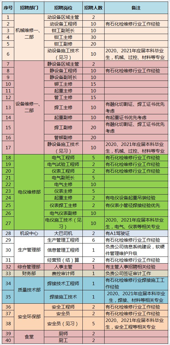 公司簡:浙江鼎盛石化工程有限公司是浙江石油化工有限公司和鎮(zhèn)海石化建安工程有限公司合資成立的檢維修子公司,公司成立于2018年8月,注冊資金6000萬元。公司經(jīng)營范圍為石化裝置及其它工業(yè)設(shè)備安裝、維修等業(yè)務(wù)。下設(shè)綜合管理部、財務(wù)部、生產(chǎn)管理部、安全環(huán)保部、質(zhì)量技術(shù)部5個職能部門及機械維修一部、機械維修二部、設(shè)備維修一部、設(shè)備維修二部、電儀維修部、綜合維修部、閥門維修部、機械設(shè)備中心8個基層單位。當(dāng)前主要工作是服務(wù)于浙江石化的全廠維保、檢修,遠期將以浙石化為基礎(chǔ),向舟山綠色石化基地中下游企業(yè)提供技術(shù)服務(wù)。
