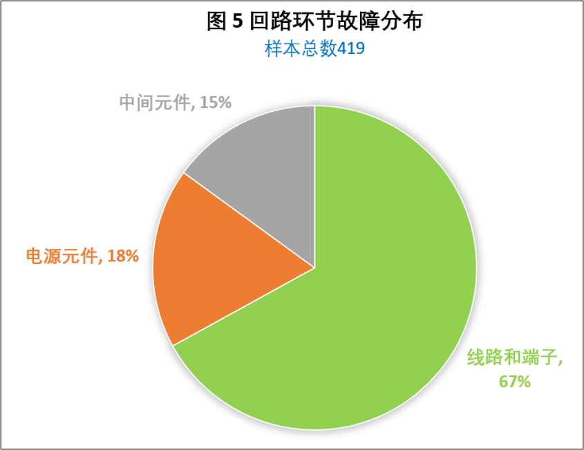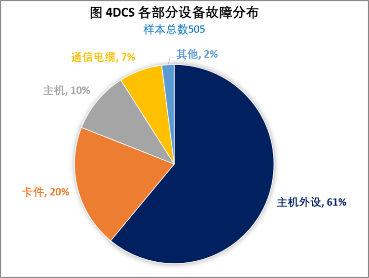 DCS故障名列全部儀表故障的第三位(圖1),DCS故障的主要因素是主機及外設故障,其次是卡件問題。主機及外設故障對裝置運行的影響極小,很少會導致裝置波動或跳車,而卡件則由于冗余配置的關系,也很少發生由此造成的跳車,需要引起關注的是占比例最小的回路環節問題,雖然僅占7%,但是引起跳車的風險卻極大,從圖3可以看出,回路環節故障的三大因素分別是端子和線路問題、電源問題和中間元件(如報警設定器、安全柵、繼電器、保險絲及按鈕等)問題,這些都是容易忽略的“次要”儀表或附件。