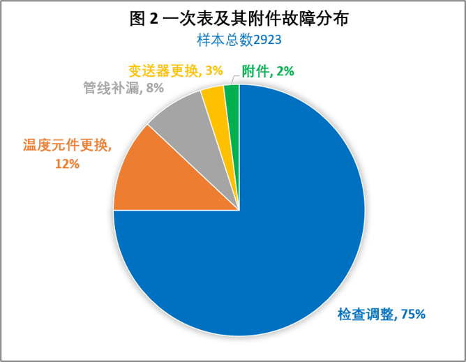 由圖2可見,一次表的檢查調整是日常儀表故障處理的主要工作,占全部故障處理作業的56%。在石化企業,該作業的頻率受工況影響較大,也與操作習慣有關———有時操作工習慣于依賴儀表工的檢查結果以做出正確判斷。