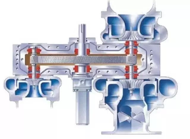 一般說,提高氣體壓力的主要目標(biāo)就是增加單位容積內(nèi)氣體分子的數(shù)量,也就是縮短氣體分子與分子之間的距離。為了達(dá)到這個目標(biāo),除了采用擠壓元件來擠壓氣體的容積式壓縮方法以外,還有一種用氣體動力學(xué)的方法,即利用機(jī)器的作功元件(高速回轉(zhuǎn)的葉輪)對氣體作功,使氣體在離心力場中壓力得到提高,同時動能也大為增加,隨后在擴(kuò)流道中流動時這部分功能又轉(zhuǎn)變?yōu)殪o壓能,而使氣體壓力進(jìn)一步提高,這就是離心式壓縮機(jī)的工作原理或增壓原理。