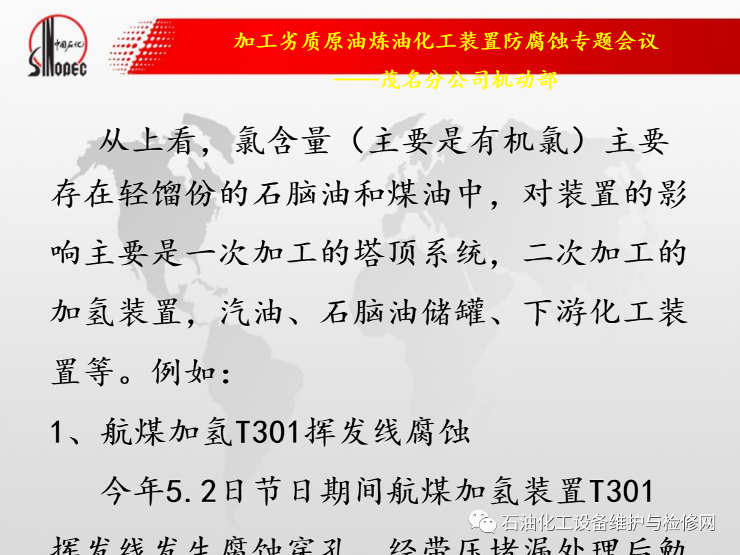 中石化茂名石化加工劣質原油煉油化工裝置防腐蝕.ppt