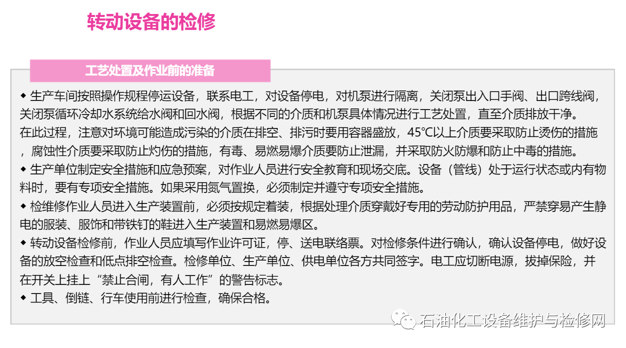 石化裝置生產(chǎn)運(yùn)行設(shè)備檢修安全知識教學(xué)PPT課件!