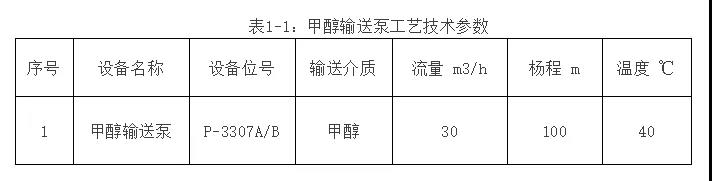 某石化企業甲醇裂解制氫裝置,原料由甲醇輸送泵P-3307A/B送到裝置進料泵,該甲醇輸送泵工藝技術參數如下: