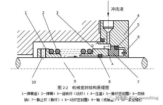 如圖2-3所示,單端面密封離心泵的軸封由一對摩擦副密封端面組成,只有一級密封,一般有自沖悉系統,無外供液沖洗冷卻系統,當這一級密封泄漏時,泵體介質會直接泄漏到環境中,主要適用于一般介質場合。與其他輔助密封并用時,可用于帶懸浮顆粒、高溫、高壓等場合。