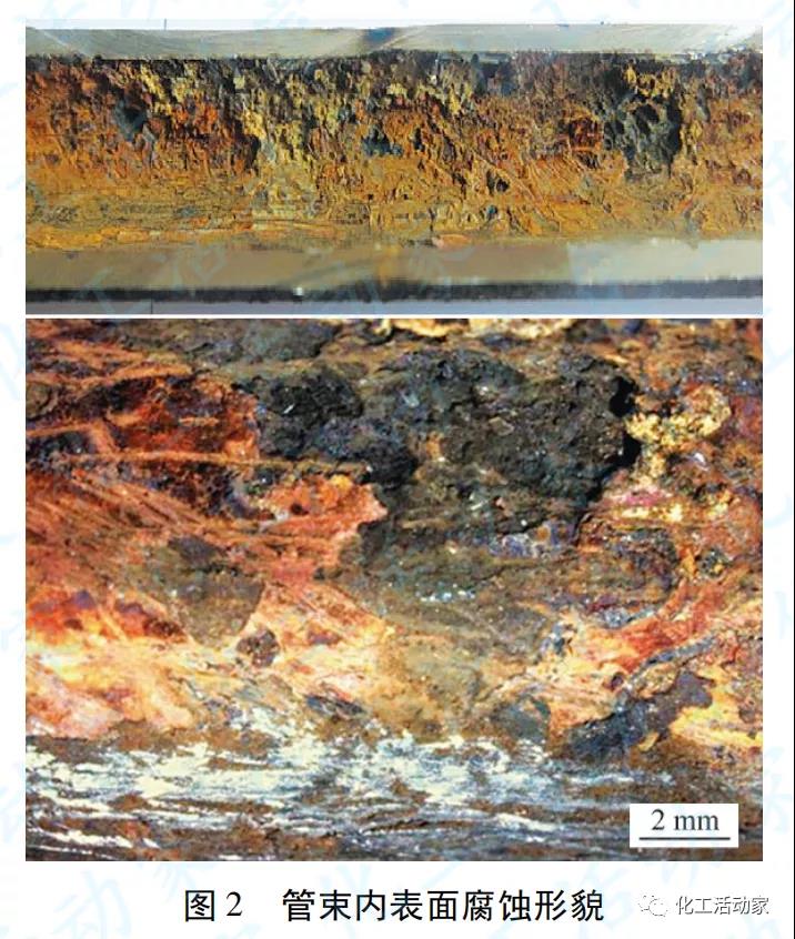 (6)準確判斷腐蝕發生的部位、腐蝕類型等,對后續防腐蝕措施具有重要的指導意義。應進一步對失效管束內外表面進行整體腐蝕部位觀察、局部腐蝕類型判斷、橫截面腐蝕坑、裂紋微觀形貌觀察等分析。