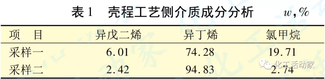 由于工藝原因,殼程介質異丁烯中氯甲烷含量遠超指標要求(不超過300μg/g),具體數據見表1。