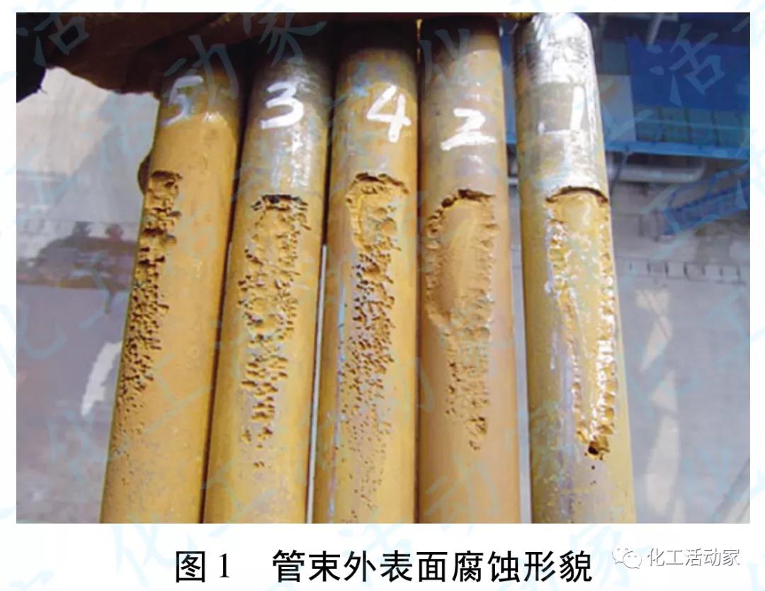(4)對殼程介質側物料進行預處理。如果工藝側完全無水,或是在檢修時采用蒸餾、烘干等方式去掉殼程水分,可以大大減緩碳鋼管束工藝側的腐蝕。此外,還可以采取以下措施,如嚴格控制原料中的氯甲烷含量,通過加堿中和等方式調整物料pH值,加入緩蝕劑等。