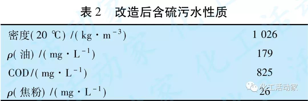 傳統(tǒng)的放空塔系統(tǒng)為間隙性操作,在焦炭塔冷焦過程運行,其他時間則停用。停用后放空塔內(nèi)物料慢慢冷卻,水蒸氣冷凝并在放空塔底積聚,當放空塔系統(tǒng)再次運行時,因塔底無持續(xù)熱源,隨著高溫物料的進入,塔底冷凝水突沸,引起塔底泵抽空,塔頂回流中斷。高溫油氣攜帶大量污油、焦粉沖出塔頂,造成塔頂空冷器易堵塞,冷卻效果差,以及塔頂回流罐污水含油率高、污水攜帶焦粉、乳化嚴重等問題,油水分離效果變差。放空塔頂污水硫質(zhì)量濃度化驗分析一般在400~2000mg/L,污水性質(zhì)見表1。
