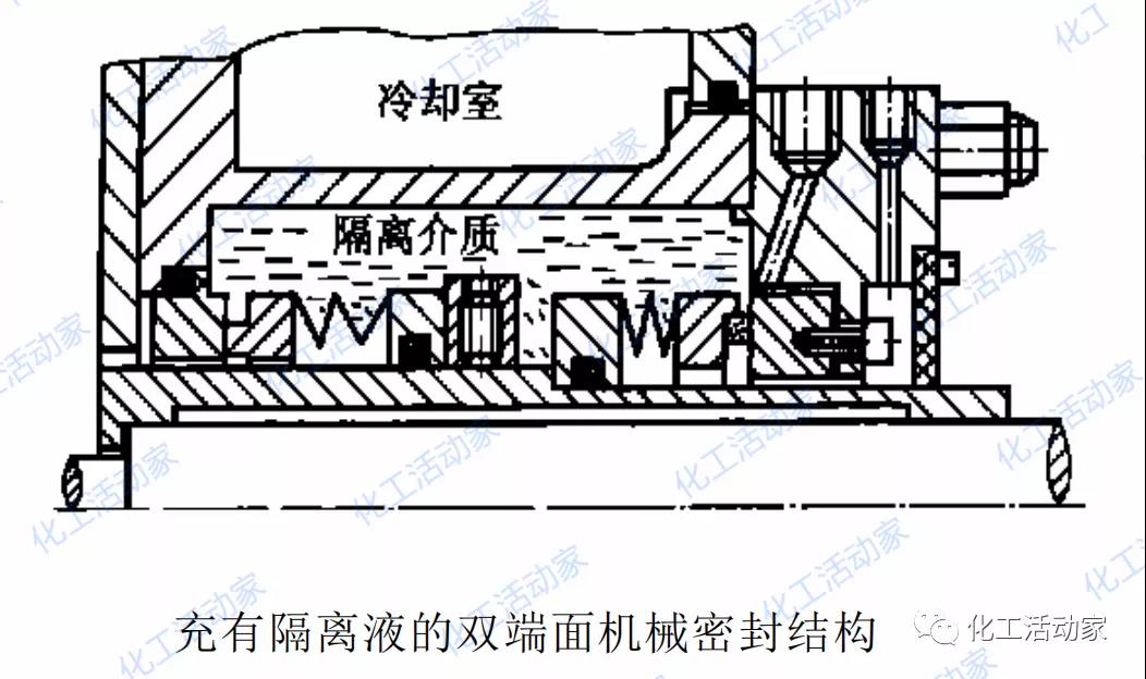3) 采用清潔的外沖洗是解決溶劑顆粒堆積的比較有效的方法之一,但這種方法浪費較大,而且各種泵的介質、溫度、壓力(一般要求沖洗液壓力比介質側壓力高0.07~0.12MPa)又各不相同,外沖洗系統結構就更繁雜,加之外沖洗設施的投入以及維護費用的消耗,有時會造成弊大于利,尤其是一些中小型企業。因此許多企業的封油系統棄之不用,或者就沒有設這套系統,針對這些情況,建議使用配有隔離介質的多密封結構,如油漿泵、回煉油泵等,使用雙端面機械密封,在兩組密封端面之間充滿隔離介質(干凈的機油等)。
