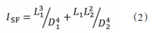 如圖4所示,API610 2010版的資料性附錄K中軸系的對撓性指數(shù)ISF用公式(2)定義為