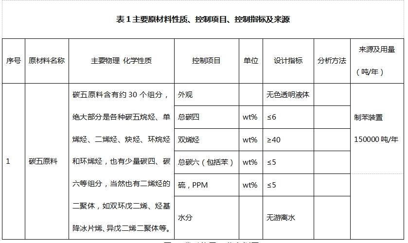 燕山碳五原料品質(zhì):(初始設(shè)計(jì))