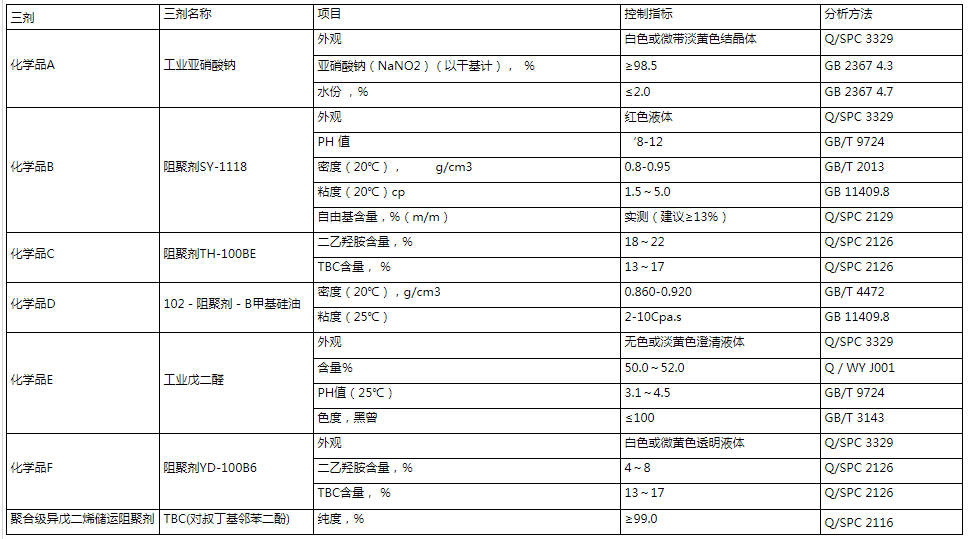 表3三劑及化學(xué)藥品性質(zhì)及控制指標(biāo)