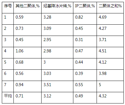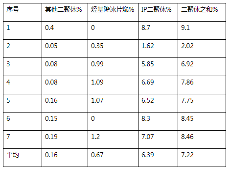 2、在二聚反應(yīng)器出口分析指標(biāo)上增加下限值進(jìn)行調(diào)整,既保證萃取干擾因素環(huán)戊二烯合格,又確保二聚反應(yīng)器環(huán)戊二烯濃度在一定范圍內(nèi),減少異戊二烯二聚體的生成,提高異戊二烯回收率。