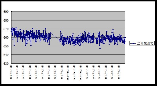 以達到提高劑油比的目的。圖5為二再床溫變化趨勢圖。