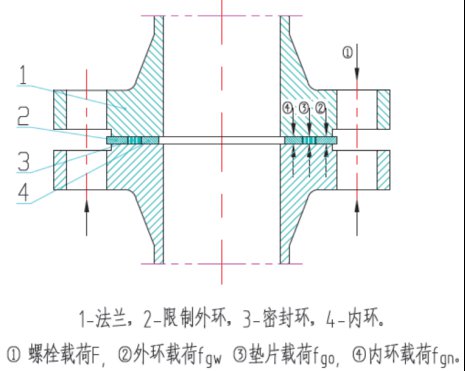 繼續(xù)增加載荷 | 金屬和石墨相比,其可壓縮性可以忽略不計(jì),此時(shí)石墨上的σgi恒定不變,而額外的螺栓載荷可認(rèn)為全部作用在金屬限制環(huán)上,此額外載荷ΔF會在金屬環(huán)上產(chǎn)生②外環(huán)載荷fgw和④內(nèi)環(huán)載荷fgn |