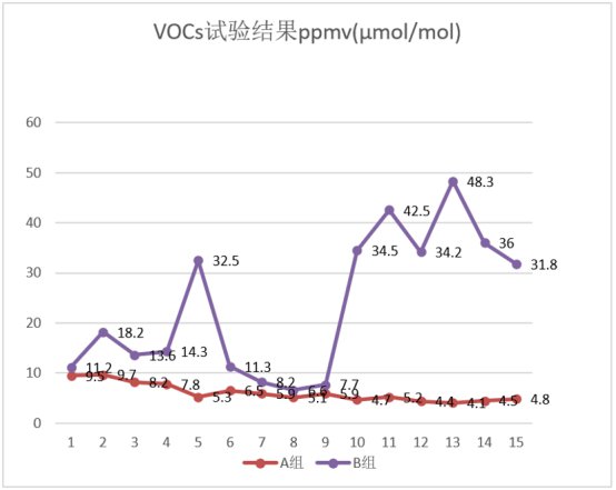 圖8 VOCs試驗(yàn)數(shù)據(jù)(A組+B組)